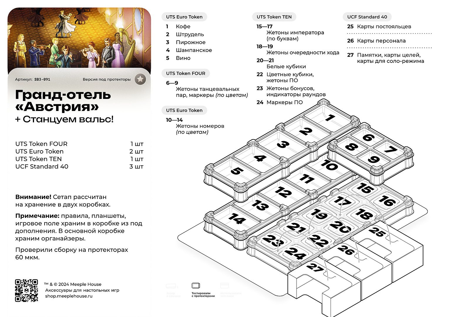 Гранд-отель Австрия — это настольная стратегия, в которой каждый игрок становится владельцем небольшой гостиницы. Вам предстоит расширять отели новыми номерами и нанимать дополнительный персонал, завлекать прохожих в небольшое кафе при гостинице и выполнять их кулинарные заказы, принимать самого императора и учиться ловить удачу за хвост — иными словами, извлекать максимальную выгоду из постоянно меняющейся ситуации.