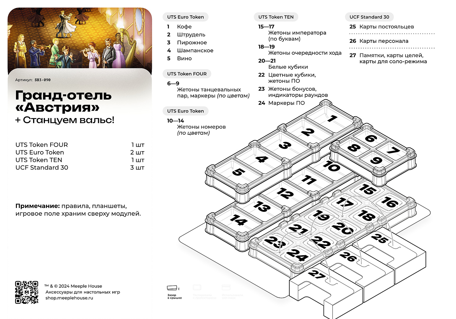 Гранд-отель Австрия — это настольная стратегия, в которой каждый игрок становится владельцем небольшой гостиницы. Вам предстоит расширять отели новыми номерами и нанимать дополнительный персонал, завлекать прохожих в небольшое кафе при гостинице и выполнять их кулинарные заказы, принимать самого императора и учиться ловить удачу за хвост — иными словами, извлекать максимальную выгоду из постоянно меняющейся ситуации.