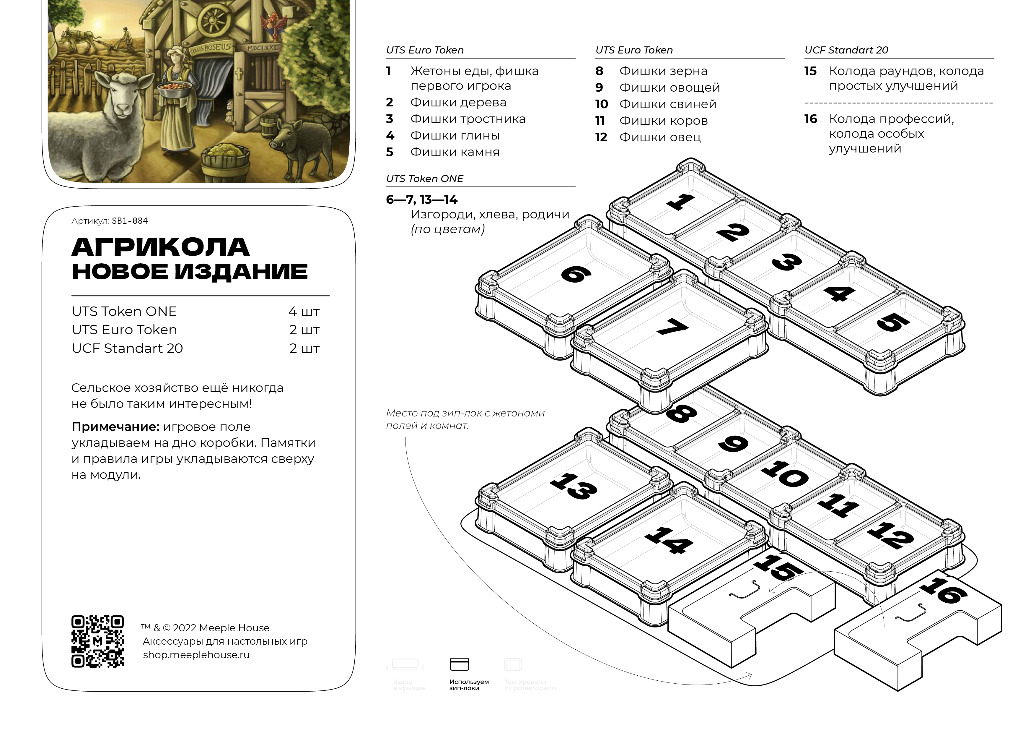 Набор не продуманный, много жетонов остаётся болтаться - нужны дополнительные зип-пакеты.