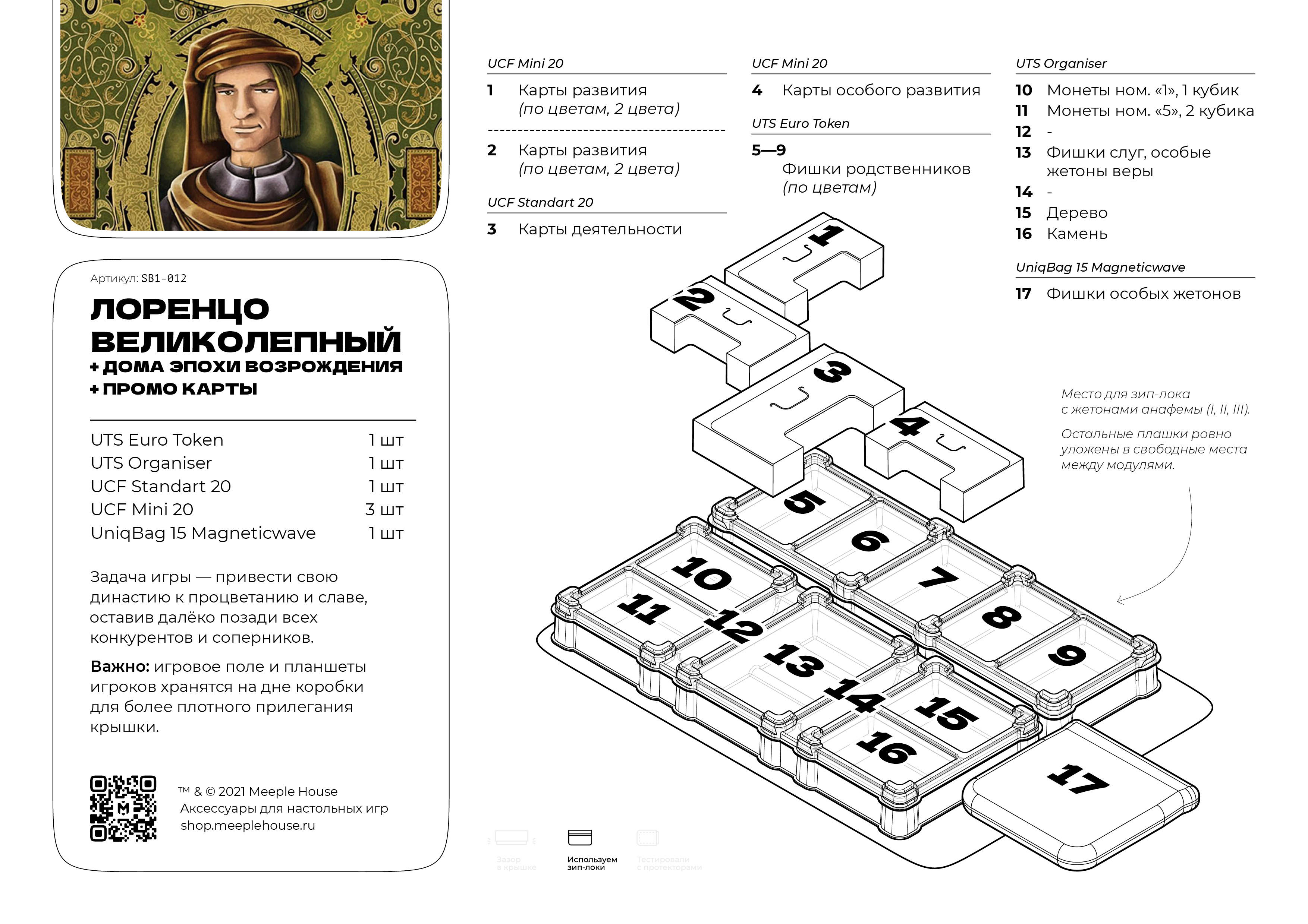 Лоренцо Великолепный - евростратегия, в которой каждый игрок встаёт во главе аристократического итальянского рода.Задача игры - привести свою династию к процветанию и славе, оставив далёко позади всех конкурентов и соперников. Чтобы достигнуть этого, игроки будут отправлять членов своих семейств в разные районы города, где они будут расширять влияние рода и приумножать его богатства. В течение всей игры вы будете добывать и распределять ресурсы, строить здания, пытаться заручиться поддержкой общества и улаживать взаимоотношения с церковью, которая в те времена обладала немалым могуществом. Игра построена на механике выставления рабочих, но с небольшой изюминкой – в начале каждого раунда вы будете не только пополнять башни картами развития, но и бросать кубики для активации действий на игровом поле. Карты развития – это важная составляющая игры. С их помощью вы сможете нанимать персонажей, возводить постройки, проводить заговоры и дерзкие авантюры. Победит игрок, набравший максимальное количество баллов.