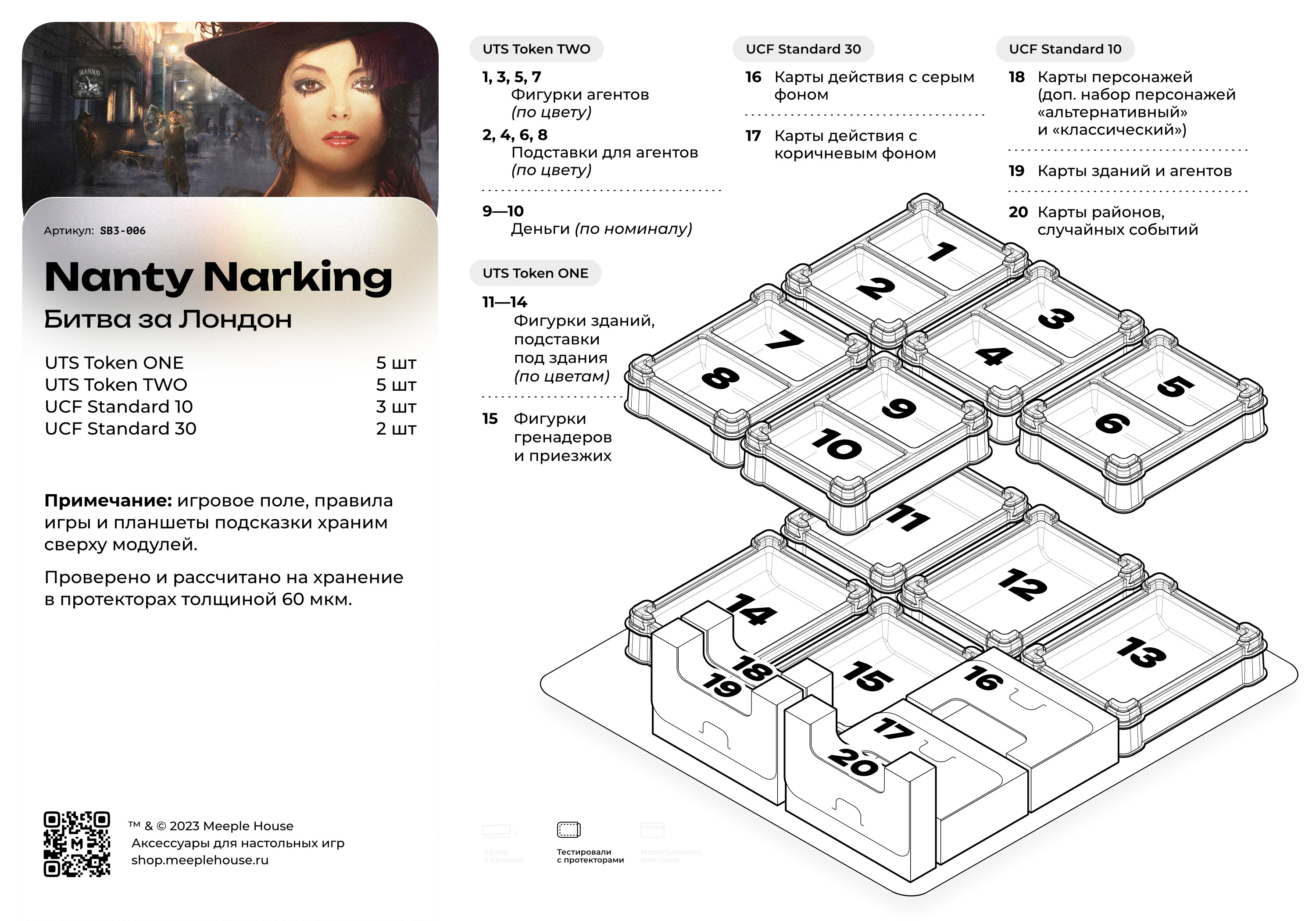 Ваша цель в игре Nanty Narking. Битва за Лондон с системой тайных ролей, подобных которой мало, — захватить Лондон быстрее оппонентов. В свой ход вы разыгрываете всего одну карту с руки, зато получаете множество разнообразных действий: разослать своих агентов по кварталам Лондона, устранить агентов соперников, получить часто незаконным путём деньги и приобрести здание.