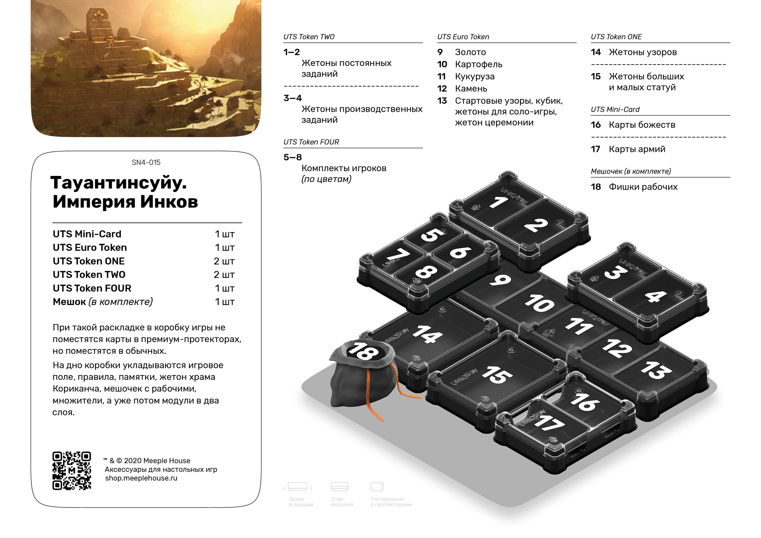 Настольная игра «Тауантинсуйу. Империя инков» входит в так называемую Т-серию игр вместе с «Теотиуаканом» и «Техену» . Добиться славы в «Тауантинсуйу» вам поможет любовь народа, и чтобы заслужить её, нужно поклоняться богам, создавать роскошные гобелены, завоёвывать территории и заниматься многим другим.