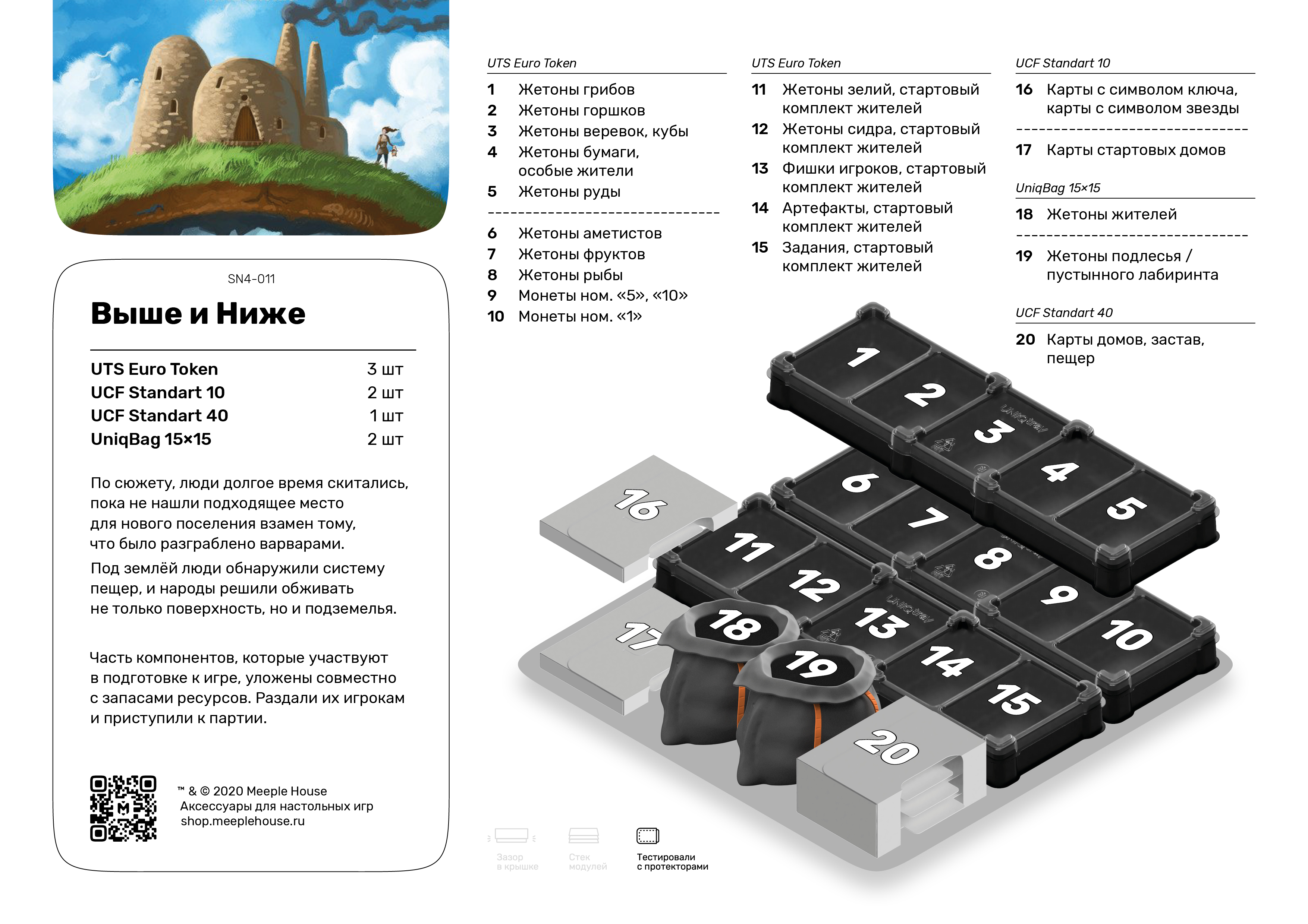 «Выше и ниже» — необычная игра от автора «Восьмиминутной империи» Райана Лауката, которую от евро-собратьев выгодно отличает приключенческая составляющая в виде книги со множеством вариантов развития событий.